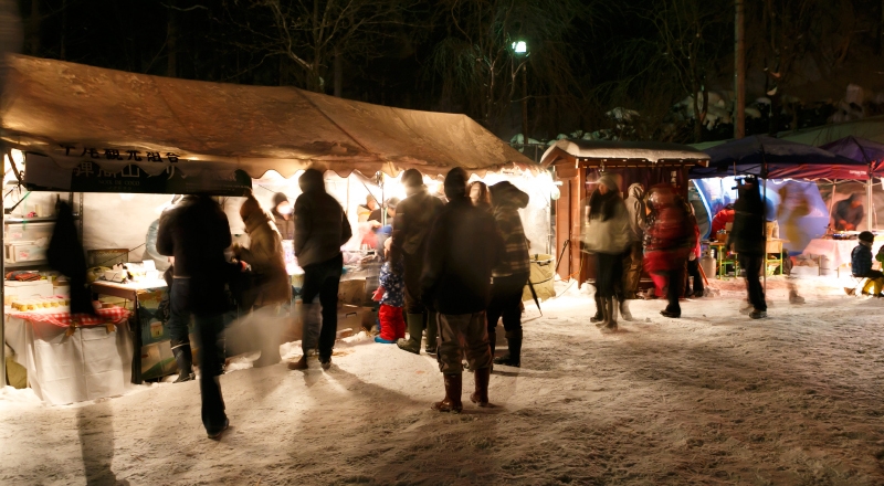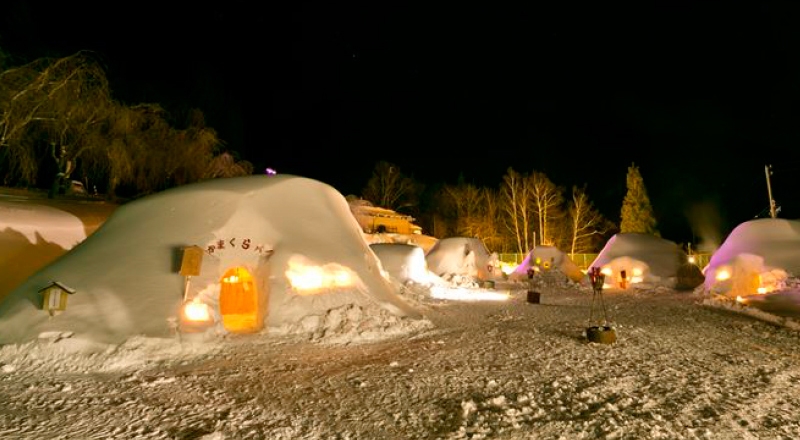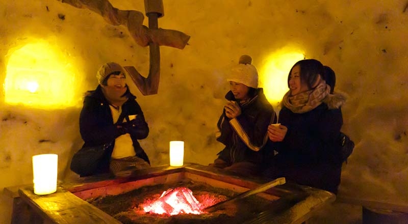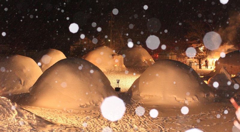 大小様々なかまくらは、「囲炉裏かまくら」や「こたつかまくら」などほっこり温まるもの